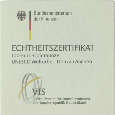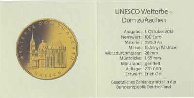 TECHNICAL DATA › 100 EURO 1/2OZ GOLD - 2012 AACHEN CATHEDRAL