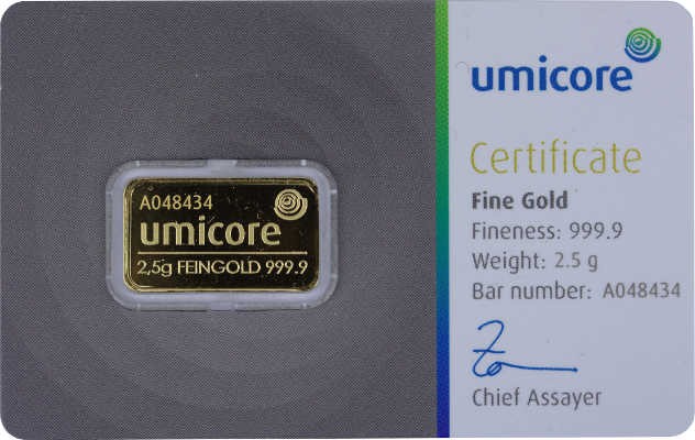 TECHNICAL DATA › GOLD BAR 2,5G - UMICORE