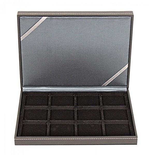 Die anthrazitfarbenen Deckelkissen bei den Münz- und Sammelkassetten bilden einen attraktiven Kontrast zu den verfügbaren Einlagen und allen hierin aufbewahrten Münzen und sonstigen Sammelobjekten. Durch die verschiedenen Größen und Ausstattungsvarianten bietet die Serie NERA viele Unterbringungsmöglichkeiten für Einzelmünzen bis hin zu einer umfangreichen Sammlung und lässt damit keine Wünsche offen.